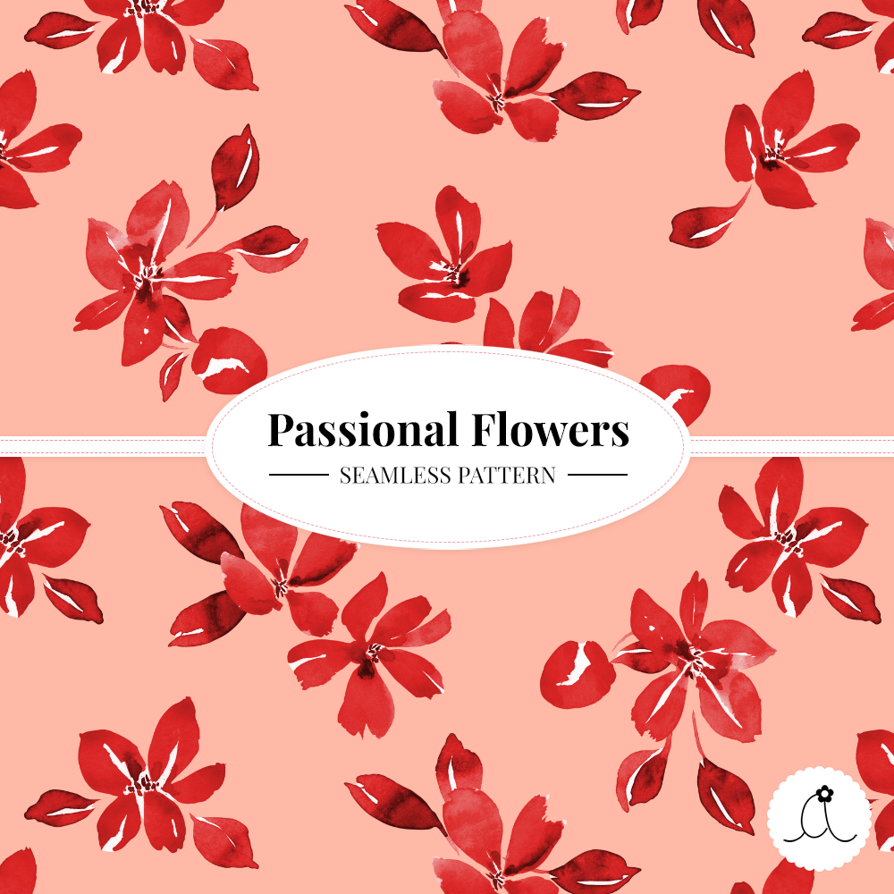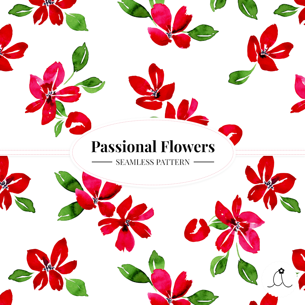Watercolor Seamless Pattern - Passional flowersWatercolor Seamless Pattern – Passional flowers